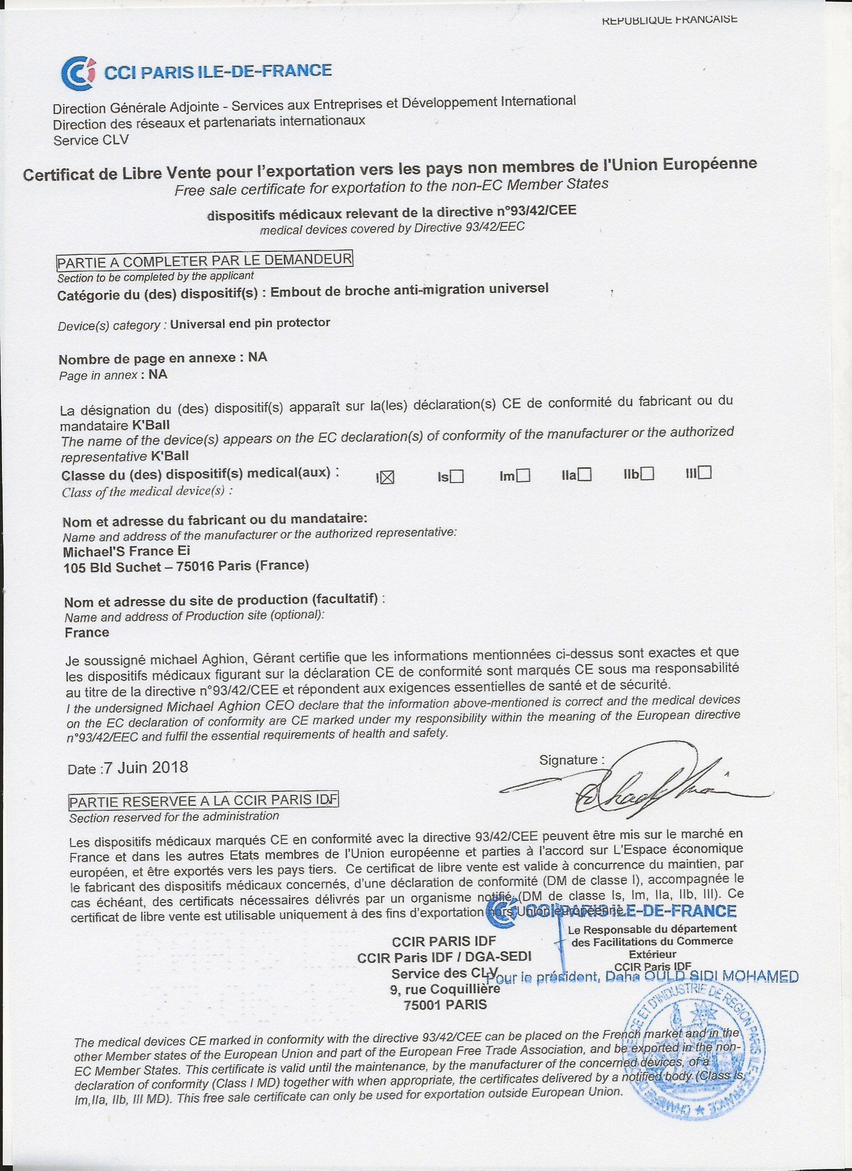 *Certificat de libre vente hors UE : cliquez ici